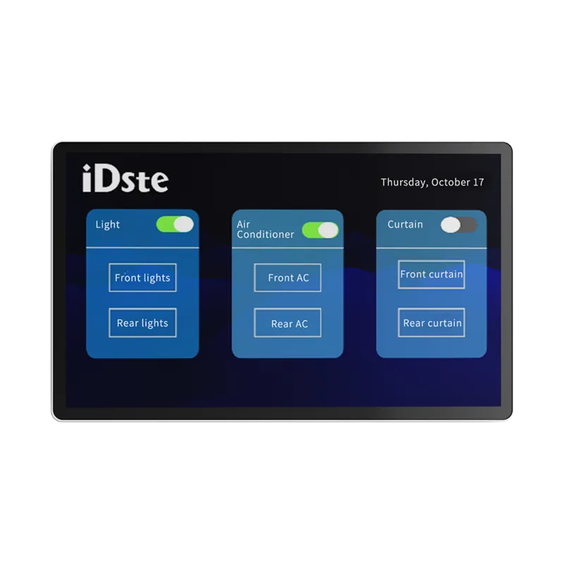 - Equipped with a 7-inch capacitive touch screen, screen resolution of 1024×600. with a RJ45 Ethernet port, 1 mircoSD card interface. Support customized logo and background image, provide device control and scene customization function.